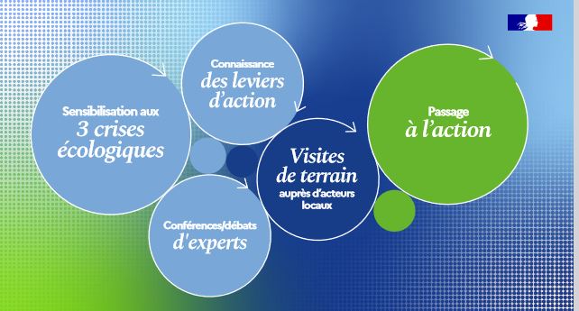 - Le chantier de formation des agents de l’État est ambitieux par son contenu et son ampleur, et n’a pas d’équivalent en Europe. L’objectif est de former 25000 cadres de l’État d’ici fin 2024, et les 2.5 millions d’agents de l’État d’ici 2027. Un parcours de formation de 28 heures au total : conférences-débats, ateliers participatifs (Ateliers des transitions et Atelier des leviers d’action) et visites de terrain. Cette démarche est au service de l’exemplarité de l’État qui mobilise les collectivités dans la planification écologique amorcée pour mettre en œuvre les engagements internationaux de la France en matière de climat.