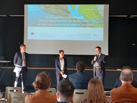 - un universitaire climatologue accompagné d’une cheffe de projet « profil environnemental » de la DREAL ont présenté différents scénarii des conséquences du réchauffement climatique sur le département de la Manche
